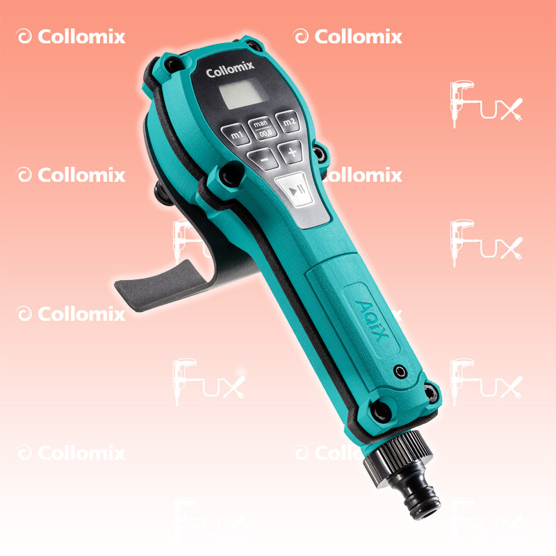 Die exakte Wassermenge bei jeder Mischung ist für eine gleichbleibende Materialqualität unverzichtbar. Das neue Wasserdosiergerät AQiX erleichtert das Abmessen der benötigten Wassermenge ganz einfach und bequem. Dazu den AQiX am Wasserschlauch anschließen, die erforderliche Menge am Display einstellen und Start drücken. Mehr braucht es nicht, um sich die Arbeit beim Wasserabmessen zu erleichtern.