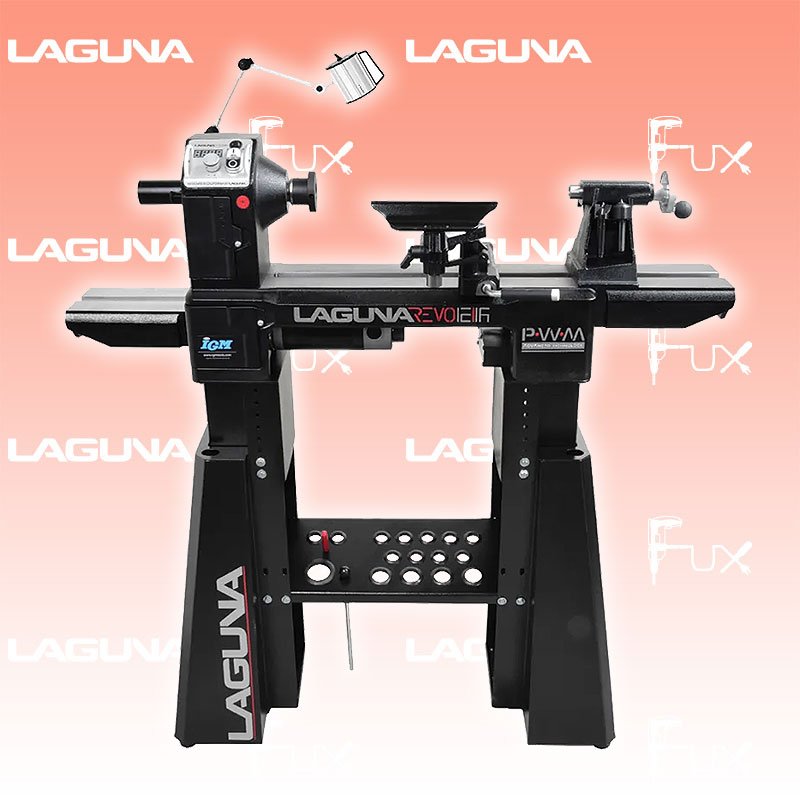 - Die Midi-Drechselbank Laguna 1216 verfügt über ein robustes Design mit einem gusseisernen Spindelstock, einem Reitstock, einem präzise geschliffenen Maschinenbett und einer Werkzeugauflage mit gehärtetem Rand.