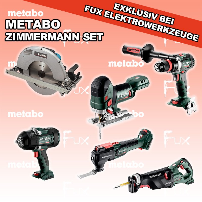 Heute auf dieses Produkt 30% Rabatt! Zu "Zimmermann Set" von Metabo FULL Service: 36 Monate zum Nulltarif für Sie! Weitere Infos zum FULL Service Dieses Produkt ist CAS kompatibel! Weitere Infos zu CAS Black Fuxday Aktionen FUX SPECIAL EXKLUSIV BEI FUX Metabo Zimmermann SET 19 SOLO Bestell- und Artikelnummer: Zimmermann SET 19 SOLO BS 18 LTX BL Q I Akku-BohrschrauberAkkuspannung 18 V Drehzahl 0-550 / 0-2000 U/min Drehmoment hart / weich 130 / 65 Nm Gewicht (mit Akkupack) 2.3 kgInfos SSW 18 LTX 1450 BL Akku-SchlagschrauberAkkuspannung 18 V Anziehdrehmoment 1450 Nm Werkzeugaufnahme 1/2" Infos SSEP 18 LTX BL MVT Akku-SäbelsägeAkkuspannung 18 V Hubzahl bei Leerlauf 0 - 3.000 /min Gewicht (mit Akkupack) 4.6 kgInfos 5143 R HandkreissägeLeistungsaufnahme 2200 Watt 50 - 130 mm Schnitt-Tiefe bei 90° Leerlaufdrehzahl 2700 U/min Gewicht 14.5 kgInfos MT 18 LTX BL QSL Akku-Multitool Akkuspannung 18 V Schwingzahl bei Leerlauf 8.000 - 20.000 /min Schleifplatte, Maß Eck zu Eck 93 mm Gewicht 1.7 kgInfos STA 18 LTX 150 BL Akku-StichsägeAkkuspannung 18 V Hubzahl 1.000-3.500 /min Gewicht ohne Akkupack 1.9 kgInfos Registriere die in diesem Set vorhandenen Metabo Maschinen auf metabo.ch, und ergattere dir bis zu 5 Gratis Akkus!Zusätzlich offerieren wir zu diesem Set einen Gratis Akku!OHNE AKKUS UND LADEGERÄT Standard-Ausrüstung In diesem Set enthalten: BS 18 LTX BL Q I Akku-Bohrschrauber SSW 18 LTX 1450 BL Akku-Schlagschrauber SSEP 18 LTX BL MVT Akku-Säbelsäge 5143 R Handkreissäge MT 18 LTX BL QSL Akku-Multitool STA 18 LTX 150 BL Akku-Stichsäge Listenpreis CHF 3'054.00 Fuxpreis CHF 2'112.00 inkl. 8.1% MwSt, inkl vRG Versand CHF 25.00 Kein Grauimport! Produkt bestellen 1 Stück 2 Stück 3 Stück 4 Stück 5 Stück 6 Stück 7 Stück 8 Stück 9 Stück 10 Stück Alle Angaben ohne Gewähr und solange Vorrat reicht!Wiederverkäufer werden? Produkt als PDF NEUHEITAKTION 30%