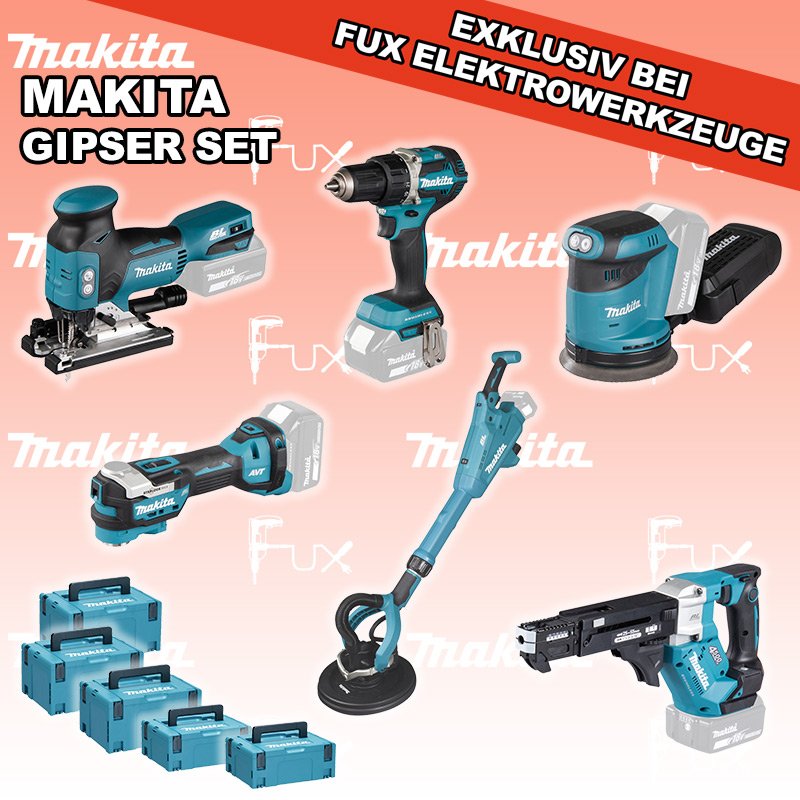 Zu "Gipser Set" von Makita FUX SPECIAL EXKLUSIV BEI FUX Makita Gipser Set 1 SOLO Bestell- und Artikelnummer: maGipser Set 1 SOLO DDF484ZJ Akku-BohrschrauberAkkuspannung 18 V Drehzahlen 0-500 / 0-2000 U/min Drehmoment hart / weich 54 / 30 Nm Gewicht 1.5 kgInfos DFR552Z Akku-MagazinschrauberAkkuspannung 18 V Drehzahl 0 - 4500 min⁻¹ Schnellbauschrauben 25 - 55 mm Gewicht inkl. Akku 1.9 - 2.2 kg kgInfos DSL801ZU Akku-LanghalsschleiferAkkuspannung 18 V Papierdurchmesser 225 mm Verstellbares Teleskoprohr mit 420 mm Spielraum Gewicht 5.8 kgInfos DBO180ZJ Akku-ExzenterschleiferAkkuspannung 18 V Exzenterhub 2,8 mm Schleifteller (Ø) 125 mm Gewicht 3.6 kgInfos DTM52Z Multifunktions WerkzeugAkkuspannung 18 V Schwingungen 10000 - 20000 min-1 Werkzeugaufnahme Starlock Max System Gewicht inkl. Akku 2.0 kg Infos DJV18ZJ Akku-StichsägeAkkuspannung 18 V Hubzahl 800 - 3500/ min Schnittleistung Holz 135 mm / Stahl 10 mm Gewicht 2.5 kgInfos 2 x MAKPAC Gr. 3Produktabmessung (L x B x H) 377 x 277 x 176 mm Infos Einsatz für DFR551 Einsatz für DFR551 Makpac Koffer Typ C (821551-8)Infos Einsatz für DTM52 Einsatz für DTM52 Makpac Koffer Typ C (821551-8) Infos OHNE AKKUS UND LADEGERÄT Standard-Ausrüstung In diesem Set enthalten: DDF484ZJ Akku-Bohrschrauber DFR552Z Akku-Magazinschrauber DSL801ZU Akku-Langhalsschleifer DBO180ZJ Akku-Exzenterschleifer DTM52Z Multifunktions Werkzeug DJV18ZJ Akku-Stichsäge 2 x MAKPAC Gr. 3 Einsatz für DFR551 Einsatz für DTM52 Geliefert im Koffer Zubehör Listenpreis CHF 2'262.00 Fuxpreis CHF 1'538.00 inkl. 8.1% MwSt, inkl vRG Versand CHF 20.00 Kein Grauimport! Produkt bestellen 1 Stück 2 Stück 3 Stück 4 Stück 5 Stück 6 Stück 7 Stück 8 Stück 9 Stück 10 Stück Option: Makita BL 1860 B ( Li-lon Akku ) für CHF 95.- statt CHF 124.-Infos Alle Angaben ohne Gewähr und solange Vorrat reicht!Wiederverkäufer werden? Produkt als PDF NEUHEITAKTION 32%