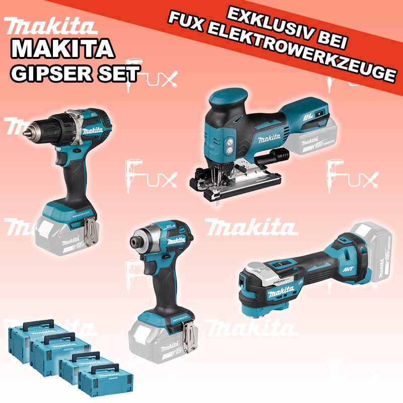 Zu "Gipser Set" von Makita FUX SPECIAL EXKLUSIV BEI FUX Makita Gipser Set 4 SOLO Bestell- und Artikelnummer: maGipser Set 4 SOLO DDF484ZJ Akku-BohrschrauberAkkuspannung 18 V Drehzahlen 0-500 / 0-2000 U/min Drehmoment hart / weich 54 / 30 Nm Gewicht 1.5 kgInfos DTD173Z Akku-SchlagschrauberAkkuspannung 18 V Anziehdrehmoment 20 / 50 / 170 / 180 Nm Werkzeugaufnahme 1/4" (Innensechskant) Gewicht inkl. Akku 1.2 - 1.5 kgInfos DTM52Z Multifunktions WerkzeugAkkuspannung 18 V Schwingungen 10000 - 20000 min-1 Werkzeugaufnahme Starlock Max System Gewicht inkl. Akku 2.0 kg Infos DJV18ZJ Akku-StichsägeAkkuspannung 18 V Hubzahl 800 - 3500/ min Schnittleistung Holz 135 mm / Stahl 10 mm Gewicht 2.5 kgInfos MAKPAC Gr. 3Produktabmessung (L x B x H) 377 x 277 x 176 mm Infos Einsatz für DTM52 Einsatz für DTM52 Makpac Koffer Typ C (821551-8) Infos MAKPAC Gr. 2Produktabmessung (L x B x H) 395 x 295 x 163 mm Infos Einsatz für diverse Schlagschrauber Einsatz für DDF083, DDF483, DHP483, DTD134, DTD137, DTD146, DTD148, DTD152, DTD153, DTD154, DTD155, DTD170, DTD171, DTP131, DTP141, DTS130, DTS131, DTS141, DTW180, DTW181, DTW250, DTW251, DTW284, DTW285Infos OHNE AKKUS UND LADEGERÄT Standard-Ausrüstung In diesem Set enthalten: DDF484ZJ Akku-Bohrschrauber DTD173Z Akku-Schlagschrauber DTM52Z Multifunktions Werkzeug DJV18ZJ Akku-Stichsäge MAKPAC Gr. 3 Einsatz für DTM52 MAKPAC Gr. 2 Einsatz für diverse Schlagschrauber Geliefert im Koffer Zubehör Listenpreis CHF 1'188.00 Fuxpreis CHF 804.00 inkl. 8.1% MwSt, inkl vRG Versand CHF 20.00 Kein Grauimport! Produkt bestellen 1 Stück 2 Stück 3 Stück 4 Stück 5 Stück 6 Stück 7 Stück 8 Stück 9 Stück 10 Stück Option: Makita BL 1860 B ( Li-lon Akku ) für CHF 95.- statt CHF 124.-Infos Alle Angaben ohne Gewähr und solange Vorrat reicht!Wiederverkäufer werden? Produkt als PDF NEUHEITAKTION 32%