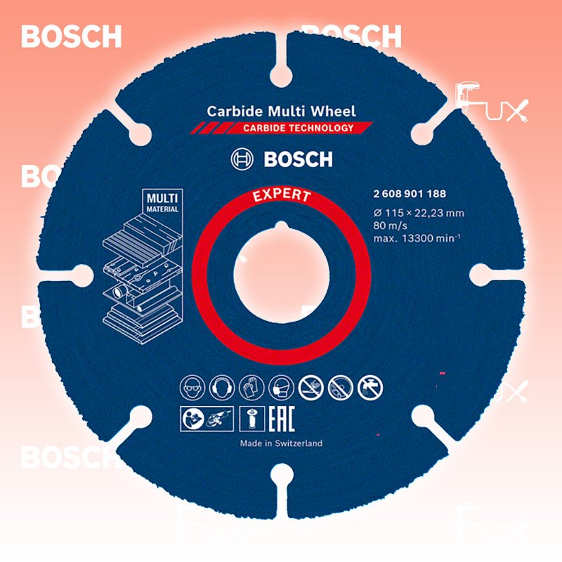 Zu "Universal Diamanttrennscheibe mit Diamant Technology" von Bosch Professional Bosch Expert Multi Material Carbide-Trennscheibe 115 mm Bestell- und Artikelnummer: 2608901188 Zum Schneiden verschiedenster Materialien Überragende Lebensdauer dank Bosch Carbide Technology Herausragende Lebensdauer in verschiedenen Werkstoffen Der gleichbleibende Durchmesser hält Schnittgeschwindigkeit und Schnittkapazität konstant hoch Extra starke Laserverbindung von Carbide-Korn und Stahlkörper geeignet für: Gipskartonplatte Hartholz Holz mit Nägel Kunststoff Technische Daten Durchmesser 115 mm Durchmesser 22.23 mm Standard-Ausrüstung Verkaufseinheit 1 Stk. Listenpreis CHF 22.50 Fuxpreis CHF 18.00 inklusive 8.1% MwSt Versand CHF 15.00 Kein Grauimport! Produkt bestellen Verkaufseinheit 1 Stk. 1 Stück 2 Stück 3 Stück 4 Stück 5 Stück 6 Stück 7 Stück 8 Stück 9 Stück 10 Stück 11 Stück 12 Stück 13 Stück 14 Stück 15 Stück 16 Stück 17 Stück 18 Stück 19 Stück 20 Stück 21 Stück 22 Stück 23 Stück 24 Stück 25 Stück 26 Stück 27 Stück 28 Stück 29 Stück 30 Stück 31 Stück 32 Stück 33 Stück 34 Stück 35 Stück 36 Stück 37 Stück 38 Stück 39 Stück 40 Stück 41 Stück 42 Stück 43 Stück 44 Stück 45 Stück 46 Stück 47 Stück 48 Stück 49 Stück 50 Stück Alle Angaben ohne Gewähr und solange Vorrat reicht! Produkt als PDF 20%