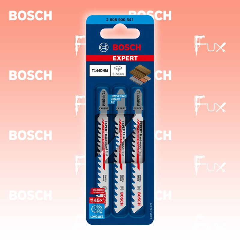 Zu "Hardwood Fast Stichsägeblätter" von Bosch Professional Bosch Expert Hardwood Fast Stichsögeblätter Bestell- und Artikelnummer: 2608900541 Hält bis zu 45-mal länger als ein Bosch T144D Stichsägeblatt Überragende Lebensdauer dank Bosch Carbide Technology Lange Lebensdauer in Hartholz und Holzverbundwerkstoffen Progressive Zahnteilung zum Trennen von Material jeder Dicke Schnelles Schneiden mit konischem Blattkörper Scharfe Carbide-Zähne durch Wechselzahn-Schleifen geeignet für: Hartholz WPC Holz-Kunststoff-Verbundstoffe Technische Daten Type T 144 DHM Werkstoff Carbide Zahnausführung Carbide-bestückt (Leiste), zähnegeschliffen Gesamtlänge 100 mm Standard-Ausrüstung Verkaufseinheit 1 x 3 Stk. Listenpreis CHF 35.00 Fuxpreis CHF 28.00 inklusive 8.1% MwSt Versand CHF 15.00 Kein Grauimport! Produkt bestellen Verkaufseinheit 1 x 3 Stk. 1 Stück 2 Stück 3 Stück 4 Stück 5 Stück 6 Stück 7 Stück 8 Stück 9 Stück 10 Stück 11 Stück 12 Stück 13 Stück 14 Stück 15 Stück 16 Stück 17 Stück 18 Stück 19 Stück 20 Stück 21 Stück 22 Stück 23 Stück 24 Stück 25 Stück 26 Stück 27 Stück 28 Stück 29 Stück 30 Stück 31 Stück 32 Stück 33 Stück 34 Stück 35 Stück 36 Stück 37 Stück 38 Stück 39 Stück 40 Stück 41 Stück 42 Stück 43 Stück 44 Stück 45 Stück 46 Stück 47 Stück 48 Stück 49 Stück 50 Stück Alle Angaben ohne Gewähr und solange Vorrat reicht! Produkt als PDF 20%